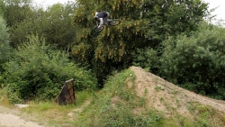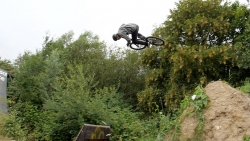 Flach gesprungener 360, das Bike liegt parallel zum Boden