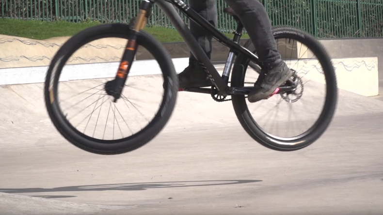 Eingeleitet wird der Sprung mit einer Kurvenfahrt, die den Drehimpuls beschleunigen soll. Absprung mit Bunny Hop und gleichzeitigem Spin aus der Hüfte heraus. Der Körper folgt dem Blick - das hilft, um das Rad entgegen der normalen Fahrtrichtung zu landen.