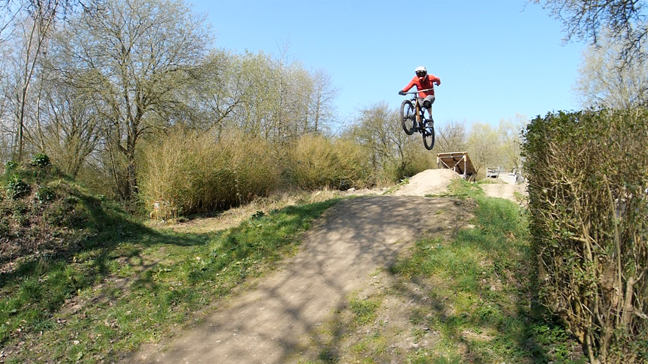 Trick Jumps One Hander one handed jump Trick All Mountain / Enduro Bike Level ★★★★ Rider: Jojo Copyright: MTB.Einsteiger.Guide