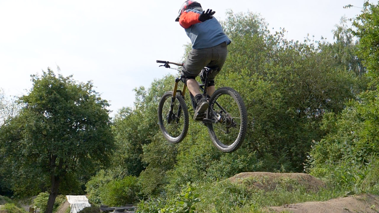 Trick Jumps One Hander one handed jump Trick All Mountain / Enduro Bike Level ★★★★ Rider: Jojo Copyright: FULLFACEMTB