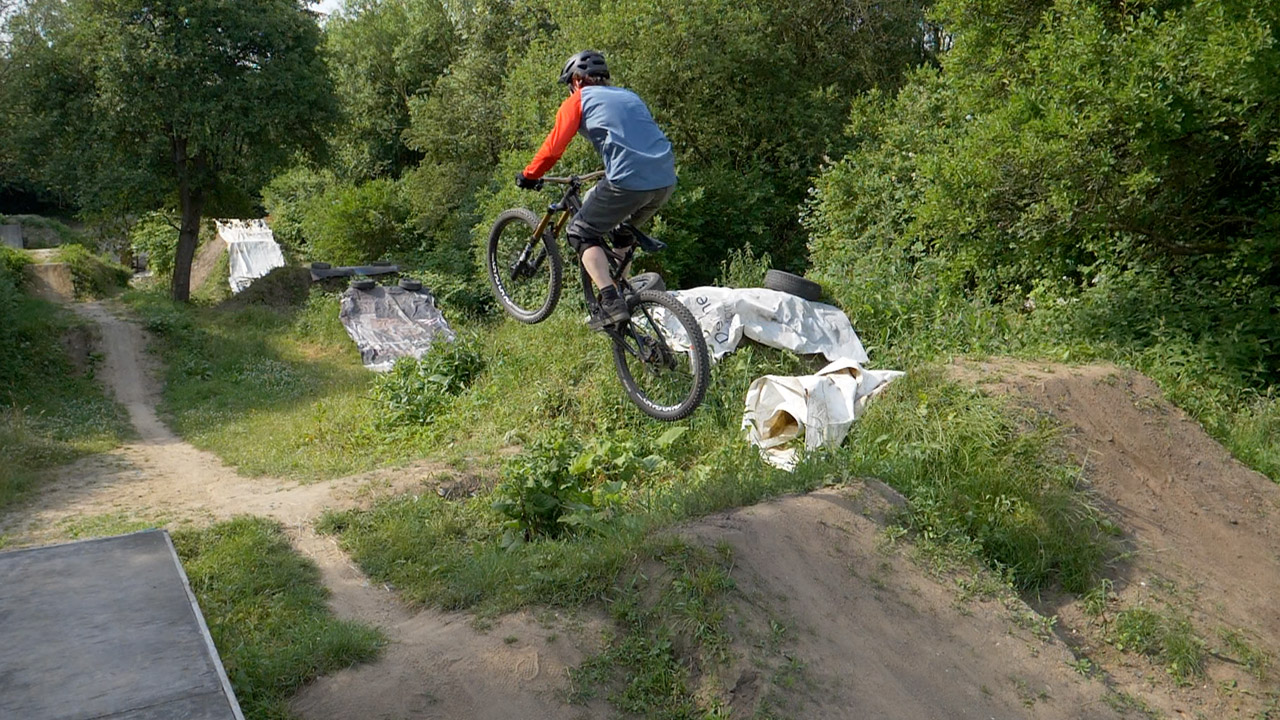 Beim Step Down liegt die Landung deutlich tiefer als die Absprungrampe, deshalb ist man am höchsten Punkt der Flugbahn sehr weit oben in der Luft und hat den größeren Teil der Airtime noch vor sich.