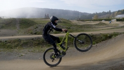 Manual into Jump - diesen Trick sieht man inzwischen häufiger. Das ist nichts anderes als bei der Anfahrt auf einen Sprung das Bike in den Manual zu bringen, auf dem Hinterrad rollend auf den Absprung zuzufahren, dann das Vorderrad auf der Rampe wieder aufzusetzen und diesen Tief-Hoch-Impuls für einen aktiven Absprung zu nutzen.